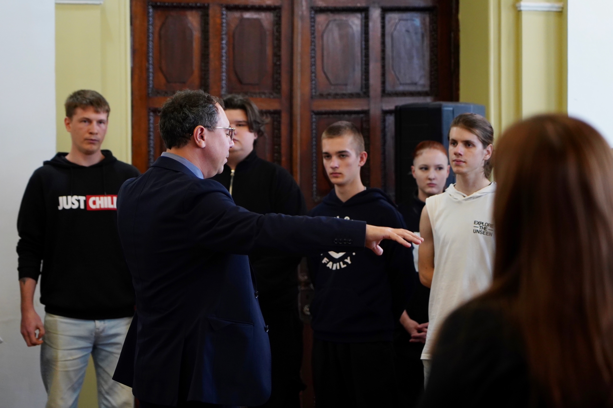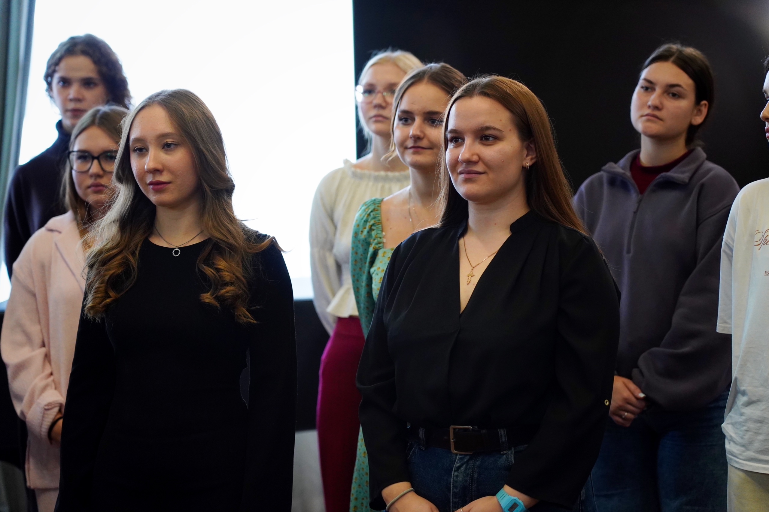 Гость провёл со студентами тренинги на активизацию и координацию, а также показал вокальные распевки. Воспитанники колледжа исполнили народную песню «Дубравушка» из своего репертуара, которая бытует на Урале.