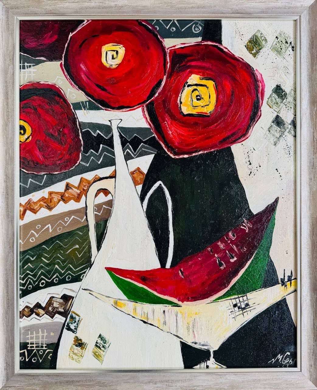 Студентка третьего курса направления подготовки «Этнодизайн и авторская школа» представила стилизованные работы «Спор контрастов» и «Яркий восторг» в номинации «Живопись».
